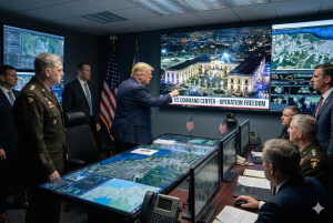 Imagen creada con IA: Donald Trump y fuerzas militares coordinando la captura de Maduro.